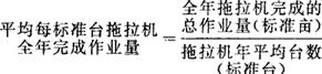 指在一年内平均每标准台拖拉机实际完成的作业量。它是反映拖拉机在时间上和生产能力上综合利用情况的一个指标。其计算公式为: