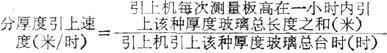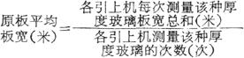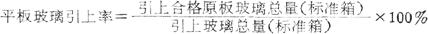 式中的分子指实际引上的合格原板玻璃。 不包括天然边,也不包括引上过程中炸裂破损和运送到切裁工序以前的破损以及不符合质量要求的“扣尺”部分。 分母指全部引上玻璃总量。引上玻璃总量(标准箱)的计算分企业和综合两种: 企业用: 引上玻璃总量(标准箱)=板高(米)×原板平均板宽(米)×引上片数(片/台时)÷10(平方米)×引上机作业台时(时)×标准箱折算系数引上片数(片/台时)=3,600秒÷每片秒数 综合用: 引上玻璃总量(标准箱)=引上速度(米/时)×引上机作业台时(时)×原板平均板宽(米)÷10(平方米)×标准箱折算系数 引上速度按下式计算: