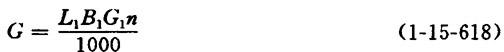 式中 G——平板纸产量,即每令纸重量(kg/令) L1——每张纸的长度(m) B1——每张纸的宽度(m) G1——平板纸报告期的产量(kg),指报告期内经过检验、包装、打件完了的数量。不论入库与否,都算该报告期的纸产量。 G1=Gm (1-15-619) m——报告期内已经检验、包装、打件完了的令数 n——每令纸的张数 |