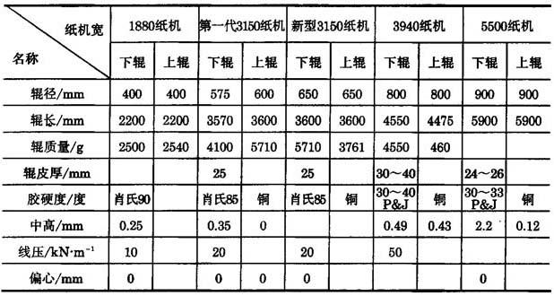| 释义 | 平滑压榨的形式及特征 平滑辊由包胶上辊(肖氏硬度85~90度)和青铜覆面下辊组成,上下两辊垂直没有偏心,也有的平滑压榨是青铜覆面上辊和包胶下辊组成,其回转方向与前者相反,领纸时将纸引到上辊顶部,绕过上辊后,从两辊之间引出。 由于平滑压榨的作用是提高纸的平滑度和紧度,因此没有毛毯。一般安装在干燥部第-个烘缸前,高速纸机采用压缩空气和引纸绳进行引纸。 表11-4-34 平滑压榨辊的规格示例