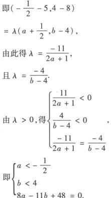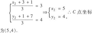 故实数a、b满足的充要条件为8a—11b+48=0且a<—1/2,b<4. 例3 在△ABC中,已知顶点A的坐标为(3,1),AB的中点为D(2,4),△ABC的重心为G(3,4),求顶点B、C的坐标. 解 设B点坐标为(x1,y1),则因为D为