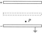 例 平行板电容器充电后与电源断开,负极板接地,在两极板间有一正电荷(电量很小)固定在P点,如图所示,以E表示两极板间的电场强度,U表示电容器两极间的电压,W表示正电荷在P点的电势能,若保持负极板不动,将正极板移到图中虚线所示的位置,则( ).