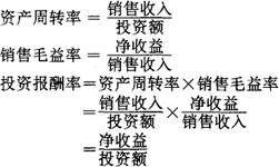 上列公式实际是“资产周转率”(资金周转率)和“销售毛益率”(销售利润率)的乘积。即: