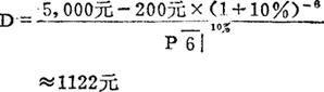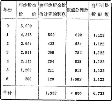 例如,某项固定资产原值5,000元,估计残值200元,可使用6年,年利率为10%,按年金折旧法计算,每年的折旧额为: