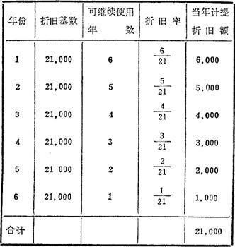 亦译“折旧年限积数法”。 是用固定资产原值减除估计残值后的余额乘以用分数表示的逐年递减的折旧率来计算折旧的方法。加速折旧法的一种。各年所使用的折旧率各不相同:其分母是固定的,为各年可继续使用年数相加之和;分子则每年不同,为当年固定资产可继续使用的年限。例如,某项固定资产可使用6年,各年折旧率的分母是固定的为6+5+4+3+2+1=21,分子则各不相同,分别为6、5、4、3、2、1。 因此各年的折旧率呈递减排列: 、 …… 。假设该项固定资产原值减除估计残值后余额为21,000元,按此法计算的折旧费用如下表: