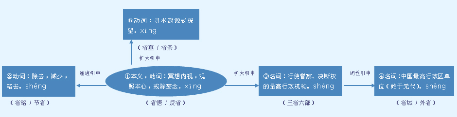 | 释义 | ![]() ❶ 节约;不浪费: ~钱|~吃俭用|钱要~着点花|这样做就~了不少时间。 费 fèi ~力|~时|这种车很~油。 ❷ 减少: ~略|~心|~去几个人也能干完。 增 zēng ~设|~产|有~无减|需要~加投入。 ❶俭省;节约。多用于口语。 a.作带宾、带补谓语,宾语可以是非名词性词语。 ~粮食|~费用|~时间|~吃~穿|修这幢房子~了很多水泥|走这条近路,时间~得多了|她每月都要~下一些钱来,补贴念高中的弟弟|必要的花费不能~,你要注意身体。 b.作定语,要带“的”。 该花的地方要花,该~地方就别浪费了|修那幢高楼~下的材料又可以修一幢小房子了。 ❷免掉;减去。多用于口语。 a.作带宾、带补谓语。 现在办事可以~几道手续了|~了几个字|~了两个人|这道工序~不了|转述时,有很多细节他都~去了|~去了不少麻烦|~出来几个劳力|这两个关键性的字眼千万不能~。 b.作定语,要带“的”。 正式文件要写全称,请你把~了的字添上。 ❶行政区划单位,直属中央;省会。常带上定语作句子成分。 a.作主语。 这个~农业相当发达|三个~联合开发这项资源。 b.作宾语。 他进~反映情况去了|台湾是中国的一个~|文件已经发往各~了。 c.作定语,常带“的”。 这个~的工业总产值居全国第二位|别~的经验可供我们参考。 ❷带上“上”“里”等方位词表示省一级党政领导机关。用于口语。 a.作主语。 ~里派来了调查组|~上决定,春节期间展开拥军爱民活动。 b.作宾语。 这件事要请示~上,答复后再办|这个案件已经报到~里了。 c.作定语,常带“的”。 ~上的文件和中央的文件精神完全一致。 【近】 〈动〉❷减 免 【反】 〈动〉❶费 耗 ❷加 增 添 【词语】 省城 省得 省份 省会 省俭 省略 省委 省心 【注意】 又读xǐng,如:省悟、反省。 字源解说 生,既是声旁也是形旁,是“性”的假借,表示本性、本能、欲望。省,甲骨文 附 文言版《説文解字》:省,視也。从眉省,从屮。 引申线索 ![]() 【字族索引】 少 省 目 【同音字】 shěng xǐng |