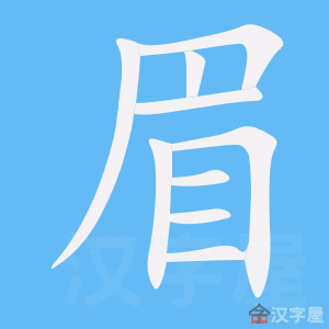 字源解说 眉,甲骨文 在眼睛 上方画一道折皱线 ,表示眼睛上方可伸展可皱缩的毛发。有的甲骨文 将折皱状 改成几根毛发形状 ,并 加“人” ,强调“眉”为人类的体貌特征。有的甲骨文 将“人” 写成“女” ,强调女子美丽动人的眉毛。造字本义:眼眶上可以缩展的毛发。金文 省去“人” 。有的金文 将眼上毛发 写成形状模糊不清的 。篆文 相比甲骨文 ,“目”上方的形象变形很大:--/002mei/[1]jia(1)jian(2).gif) --/002mei/92yinshua00.gif) --/002mei/[1]jia(2)jian(1).gif) --/002mei/92yinshua00.gif) --/002mei/[2]jin(1)jian(1).gif) --/002mei/92yinshua00.gif) 。隶书 则将篆文的 写成面目全非的 。 附 文言版《説文解字》:眉,目上毛也。从目,象眉之形,上象頟理也。凡眉之屬皆从眉。 附 白话版《说文解字》:眉,眼睛上部的毛发。字形采用“目”作边旁,像眉毛的形状,上部褶皱像额头的皱纹。所有与眉相关的字,都采用“眉”作边旁。 引申线索