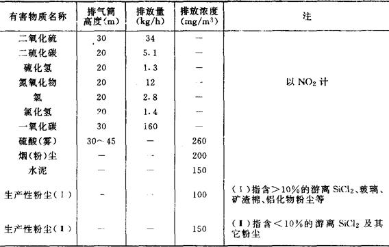 | 释义 | 废气排放标准 根据危害程度和国情,国家暂定标准见表1。 表1 工业废气中有害物质最高排放浓度