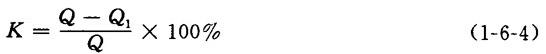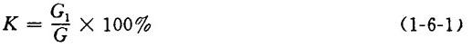 式中 K——废液提取率(%) G1——本期送碱回收车间黑液中的碱量(kg/t风干浆) G——本期蒸煮用碱量(kg/t风干浆) (二)一般计算法 【说明】 洗涤过程所提取送回收系统的废液中固形物的量,与蒸煮后废液中固形物含量之比,实际上是洗涤效率减去跑、冒、滴、漏等各种损失。这是评定洗涤过程中设备运行和管理水平的指标。 【公式】