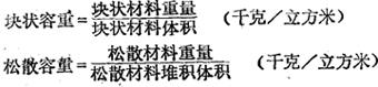 在实际计算材料容重时,常把材料自然状态划分为块状和松散状态两类计算。