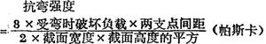 当外力作用于构件中心的集中载荷,而材料截面为矩形时,则抗弯强度为: