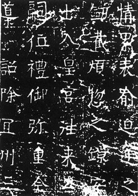 《张僧妙碑》体势挺拔纵长,用笔瘦劲多骨,时或掺杂隷书笔意,遂使其古趣眞态横错其间,观之如同耆宿尊长,欲严而又忍俊不禁,极有情性。但是,由于一些字形点画太不经意,有乖于书理,在一定程度上影响了通篇效果。 |