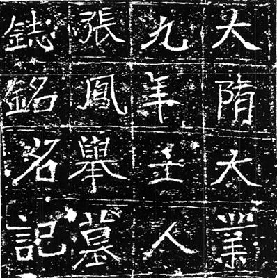 【简介】: 隋大业九年(613)刻。正书“大隋大业九年士人张凤举墓誌铭名记”十六字。四行,行四字。20×18.5cm。赵万里辑入《汉魏南北朝墓誌集释》。 【赏析】:  隋《张凤举墓誌》受两汉、南北朝书风影响最爲明显,其书骨体洞达、线条细劲、意趣稚拙、意态閑适。 墓誌四行,行四字,横、纵间距大致相等,唯首行前三字和第二行间距略宽。 其用笔方圆并置,方而尽其意,不刻、不薄,和圆笔浑然一体;圆而抒其情,峭拔坚挺、硬瘦通神。行笔铺、裹变化多端,以疾涩之法取疏蕩之势,能直中有曲、曲中见直。使转处大多用楷法,提按折转或方整峻峭、或细笔圆融,皆随心所欲、无施不可。 由于墓誌书法点画跳跃,善于用曲,所以意味绵长,天趣盎然,足见书者童心未泯,天籁淸机出于无心、发于有意。该墓誌有细线界格,其线和书法风格统一,不以严整求工。横线均复有双线,一则爲形式需要,双线可矫细线单薄、单调之弊;二则誌文爲信手所书,首行和后三行行距不等,且有下坠之势,复线可调整通篇重心,使整体布局不致松散。细观界格线,似先信手书文,然后随手界线,取得生动活泼、自然灵变的艺术效果。 |