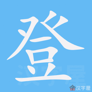 | 释义 | 登 1 ★★★ 00970名![]() ❶(人)由低处到高处(多指步行)。作带宾、带补谓语。 ~峨眉山|他~梯子上房|青城山我只~过一次|大家都~上了最高峰|我年纪大了,~不了山了|我~了半天才~上山顶。 ❷刊登或记载。可重叠。常作带宾、带补谓语。 ~头版头条|~了一条新闻|报上~了他的文章|你也~~光荣榜好不好|已经~过广告了|~了好几天了|~出来了|广告~早了|把这笔账也~进去|~在第四版|~过两次报|~错了版|这份报纸~起惊险小说来了|我们的学报一期~不了10万字|她把每天的开支都~上账本了。 【词语】 登程 登峰造极 登高 登基 登记 登记册 登科 登临 登陆 登陆艇 登门 登攀 登山运动 登时 登台 登堂入室 字源解说 豆,既是声旁也是形旁,表示盛器。登,甲骨文 附 文言版《説文解字》:登,上車也。从癶豆。象登車形。 附 白话版《说文解字》:登,上车。字形采用“癶、豆”会义。像踏板登车的样子。 引申线索 ![]() 【字族索引】 登 豆 【同音字】 dēng |