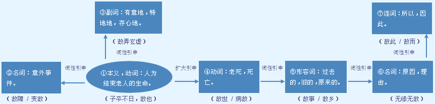 gù ❶名原因。借故推辞|缘故 →❷连连接分句,表示因果关系,相当于“所以” “因此”。近日旧病复发,故未能如期返校。 ○❸名事情;特指意外的或不幸的事情。事故|变故 ○❹副表示有意识地或有目的地(这样做),相当于“故意”。明知故犯|故作姿态|欲擒故纵 ○❺名姓。 故 2 gù ❶名旧的、过去的事物。温故知新|吐故纳新 →❷名指老朋友;旧交。非亲非故|沾亲带故|一见如故 →❸区别原来的;过去的。故乡|故居|故土难离 →❹动婉词,指人死去。病故|故去