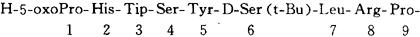 C59H84N18O14=1269.43 CAS-65807-02-5 促黄体(生长)激素释放因子(猪),6-[O-(1,1-二甲基乙基)-D-丝氨酸]-10-去甘氨酰胺-,2-(氨基羰基)酰肼。 Luteinizing hormone-releasing factor(pig),6-[O(1,1-dimethylethyl)-D-serine]-10-deglycinamide-2-(aminocarbonyl)hydrazide. 1-(5-氧-L-脯氨酰-L-组氨酰-L-色氨酰-L-丝氨酰-酪氨酰-O-叔-丁基-D-丝氨酰-L-亮氨酰-L-精氨酰-L脯氨酰)卡巴肼。 1-(5-Oxo-L-prolyl-L-histidyl-L-tryptophyl-L-serylL-tyrosyl-O-tert-butyl-D-seryl-L-leucyl-L-arginyl-Lprolyl)semicarbazide. 促性激素释放素,抗肿瘤药。用于内分泌疗法的晚期前列腺癌。 果丝瑞林。 Goserelin,ICI 118,630,Zoladex,Agonist. INN,BAN,USAN.   |