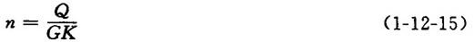 式中 n——所需台数 Q——需要处理的浆料量(t/d) K——设备利用系数,可取0.7~0.8 G——单台设备的处理量(t/d),计算同式1-12-14,也可由表1-12-1查得 |