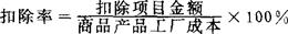 | 释义 | 扣除率 增值税用语。 增值率的对称。在一定时期内纳税人在生产应税产品中所耗用的扣除项目金额与该产品工厂成本的比率。通常用百分数表示,称为扣除率。其计算公式为: