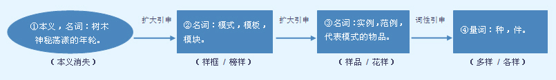 | 释义 | ![]() ❶形状、模样。常儿化。 a.做主语。 这鞋~不错|你小时候的~儿还没变。 b.作宾语。 几年不见,小彬还是那~儿|瞧你这副~儿! ❷用来作标准的东西。作宾语。 玲玲也学着大人的~儿,把双手背在背后|俗话说,“大狗爬墙,小狗捡~”,他自己就成天不务正业,还责怪孩子不学好。 表示事物的种类。常儿化,可重叠。常构成数量词组作句子成分。 a.作定语。 王嫂,请你给我捎两~儿小菜回来|这几~东西都已经过时了|学生食堂每天中午都有六~儿荤菜|上学期,我~~儿功课都上了90分。 b.作状语。 他把货物一~一~儿地摆在货架上。 c.作主语。 咱家二娃子~~儿都好,就是脾气太倔。 【辨】 样和种:都可作量词,强调与别的事物有所区别时,一般可通用,如“小店里没有几样(种)商品”“我已经搜集了100多种(样)酒的商标”。 区别: ❶用法上有差别。着重于性质、作用等方面的区别或用于一些抽象事物时,一般用“种”不用“样”,如“各种思想”“两种前途”“两种命运”。 ❷词性有差别。“种”有动词用法,“样”没有动词用法。 【误】 大家对这个问题有两样不同的认识。(对抽象的事物,不能用“样”,宜改作“种”) 【近】 〈量〉种(zhǒng) 类 【词语】 样板 样本 样稿 样机 样品 样书 样张 字源解说 羕,既是声旁也是形旁,是“漾”的本字,表示水波泛动。样,篆文 附 文言版《説文解字》: 樣,栩實。从木,羕聲。 附 白话版《说文解字》: 样,栩树的果实。字形采用“木”作边旁,“羕”是声旁。 引申线索 ![]() 【字族索引】 羊 【同音字】 yàng |