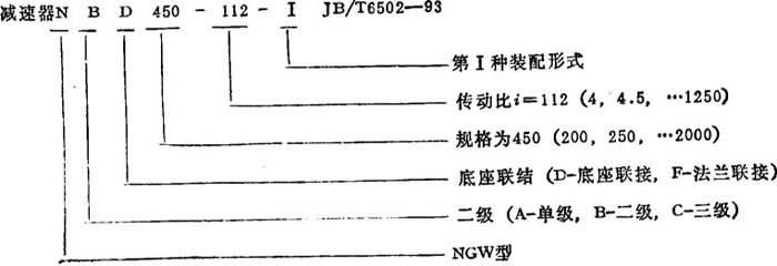 NGW型行星齿轮减速器代号示例: