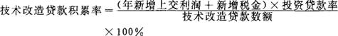 一定时期内技术改造贷款新增上交利润同新增税金之和与技术改造贷款数额之比,反映技术改造贷款为国家积累资金的程度和水平。其计算公式:
