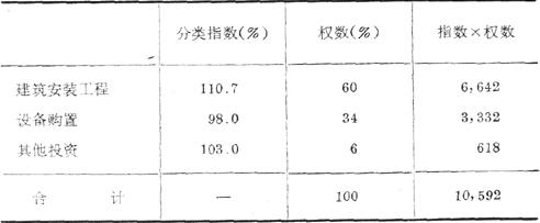 如:某地区固定资产投资总额中,建筑安装工程价格指数、设备价格指数、其他费用变动指数及其权数资料如下: