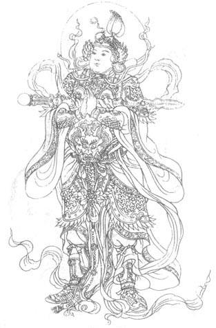 | 释义 | 护法韦驮天尊 佛教的护法天神。 为南方增长天王的八大神将之一,居四天王所属三十二种将之首。据说他原名叫跋阇罗波腻,“跋阇罗”是金刚的意思,“波腻”是手的意思,这是因为他手执金刚杵而得名的。他的另一个名字叫韦琨,人称“韦天将军”,据唐代道宣《律相感通传》记载,他作为三十二神将之首,专职拥护东、西、南三洲的佛化。后来他的名字同“韦驮天”(阴间之神)相混,人们遂称他“韦驮”。 在中国庙宇的造像中,韦驮多作童子状,著甲胄,执金刚杵,置于天王殿弥勒佛之后。