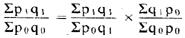 式中:∑为总计符号,p1、p0为计算期和基期的商品价格,q1、q0为计算期和基期商品流转量。另一类是平均数指数体系,各组成因素之间的关系为: