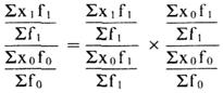 式中:∑为总计符号,x1、x0为计算期和基期工资水平,f1、f0为计算期和基期职工人数。 |