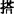 | 释义 | 搭 dā 12画 扌部 左右 形声字 RAWK 【笔顺】 【释义】(动) 【搭伴】dābàn(动)顺便结伴。 [近义]结伴 [例句]他俩决定搭伴去北京。 【搭车】dāchē(动) [例句]此次给有贡献的人员涨工资,其他人员不许搭车调级。 【搭档】dādàng [近义]合伙 合作 [例句]几年比赛下来,他们成为最佳搭档。 【搭话】dāhuà(动) [例句]他不爱搭话。 【搭配】dāpèi [近义]结合 配合 [例句]我们要注意营养搭配,尽量不要挑食。 组词:搭班 搭腔 搭桥 搭讪 搭载 |