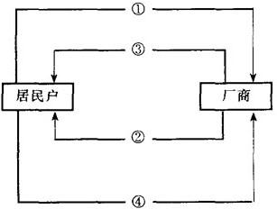 可用下图来说明:图中❶ 表示居民户向厂商提供各种生产要素的劳务;❷ 表示厂商向居民户支付生产要素劳务的报酬,即居民户得到收入;❸ 表示厂商向居民户提供各种物品与劳务;❹ 表示居民户购买这些物品与劳务,进行支出。以上这4个过程把居民户与厂商联系起来,使经济得以正常运行。