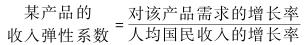 对某个部门产品或某一产品的需求,随著人均收入的增长而增长的比率。