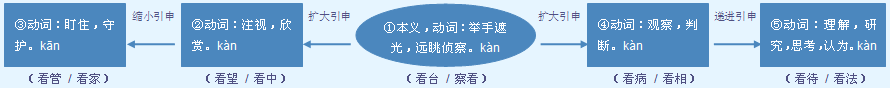 | 释义 | ![]() 动 使视线接触人或物。 【例句】他们去~电影。 【同义】瞅;瞧;瞟;瞥;望;顾;盯;观 瞄;阅 【辨析】“瞅”、“瞧”、“瞟”都只用于口语,但“瞅”侧重较注意地把视线投向对象,方言词,“瞧”只表示一般地看,而“瞟”则是斜着眼睛很快地看;“看”是通用词,运用范围广;“瞥”侧重于目光一掠而过,多用于书面语;“望”侧重于视线高向或平向投往远方或前方;“顾”侧重于转动头而投以视线,文言词,多与“反、回、环、四”连用;“盯”侧重于目不转睛地看,对象是人或较小的物体。 瞧;观察并判断: 观~|~DVD|喜欢~书|这个人老是想~别人笑话。 瞅 chǒu 顾 gù 观 guān 瞥 piē 瞧 qiáo 视 shì 望 wàng ★ “看”属多义词,适用范围较广。 守护照料、监管。常作带宾、带补谓语。 我爸爸退休后,一直在石油仓库~大门|~西瓜|~园子|~自行车|~行李|~小偷|你在这儿~着病人,我去叫辆救护车|~腻了|已经~了两天了|把坏蛋~跑了|把羊~丢了|警察暗暗~上小偷了|没~好孩子|~不住他|一个人~不了(liǎo)10台机器|~起山林来了。 【辨】 看(kān)和看(kàn):见“看”。 【词语】 看管 看护 看家 看守 看押 【注意】 另见kàn。 观看,阅读;看望;对待;诊治。可以重叠。可以有使动用法。常作带宾、带补谓语。 ~电影|~杂技|~书~报|~显微镜|他深情地~着妈妈|~朋友去|你先去~~她吧!|丹华~了~后面,见无人跟踪,这才进了公寓|刚~了病|~清楚点|把人~死了|~错了|~完了|~穿了|~了两遍|~了三个钟头|~在眼里了|~不成了|~不下去了|~穿了他们的诡计|~破了红尘|~不上书了|~不懂英文|~出了问题的性质|这事你怎么~|再仔细点儿~~|一篇一篇地~|别从表面上~,要从本质上~。 ❶一般用在重叠的动词后面,表示试一试的意思。 你想想~,是不是照片上的这个人|你试试~。 ❷在句子中作独立成分,有加重语气的作用。这种“看”有变成叹词的趋势。 你不听我的话,~,挨批评了吧! 【辨】 (一)看(kàn)和看(kān):❶词义上有差别。“看(kàn)”表示眼睛接触人或物;“看(kān)”指守护、监管等,没有用眼睛接触的意思。 ❷词性有差别。“看(kàn)”有助词用法,表示试一试;“看(kān)”没有助词用法。 ❸“看(kàn)”可以重叠为“看看”或“看一看”“看了看”;“看(kān)”不能重叠。 (二)看(kàn)和看见:❶词义的着重方面与否定形式不同。“看”表示正在用眼睛接触人或物,否定式可以用“不”;“看见”表示“看”的结果,重在已见到,否定式用“没”,不能用“不”。 ❷用法上有差别。“看”是持续性动词,前面可加“在”“正在”等副词,表示动作正在进行;“看见”是非持续性动词,不能这么用。 【误】 我瞪大了眼睛,可什么也没看。(“瞪大了眼睛”,显然是在“看”。应把“看”改为“看见”) 【近】 瞅 瞧 望 【词语】 看不起 看穿 看破 看齐 看望 看中(zhòng) 看重 【注意】 另见kān。 字源解说 看,篆文 附 文言版《説文解字》:看,睎也。从手下目。 附 白话版《说文解字》:看,睎,远望。字形采用“手”和手下的“目”会义。 引申线索 ![]() 【字族索引】 目 【同音字】 kān kàn |