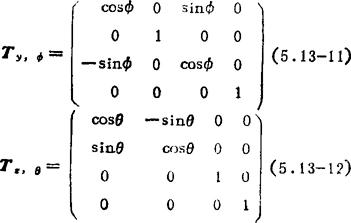 类似,绕y轴转动Φ角和绕z轴转动θ角的转动矩阵为: