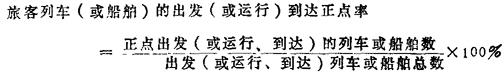 运输部门完成旅客运输工作的优劣程度。也就是为满足旅客一定需要,运输业在完成旅客运输生产任务过程中应具备的特性。具体表现在安全、准确、迅速、舒适和方便。 安全:指在运输过程中保证旅客人身和财产的安全。一定时期内反映这种特性的指标是:  准确:指保证旅客按列车运行时刻表(或船舶船流表)的规定,正点出发,正点到达目的地。其指标是:  在空间上的准确性应保证旅客到达指定的站(港)。 迅速、舒适:它具有一定的相对性。迅速一般按各种列车(船舶)平均直通速度表示。舒适至少应保证旅客在被运送过程中维持生理上和生活上的起码需要。至于减少振动和噪声,加大活动场地,提高生活供应水平等,则取决于国家一定时期的技术经济发展程度和人民生活水平。 方便:指在车(船)票的出售,行李包裹的托运、领取,物品的携带,旅客的候车(船)、中转换票等,运输部门应尽可能为旅客提供各种便利条件。 |