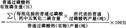 指普通过磷酸钙中含五氧化二磷的比重,它是反映普通过磷酸钙质量的指标。根据每批取样、化验的结果,进行加权算术平均求得,其计算公式如下: