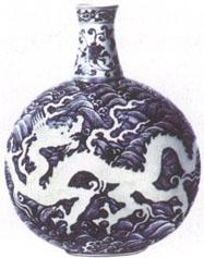 以生产青花瓷著称的景德镇,位于江西省东北部的昌江河谷,是一个山明水秀、景色幽丽的山城。 这里的瓷土、高岭土矿藏丰富,自宋代开始烧制御器。 在景德镇的四大传统名瓷中,青花瓷器为首,另外有青花玲珑瓷、粉彩瓷和颜色釉瓷。四大名瓷以外,还有雕塑瓷、薄胎瓷、五彩瓷等。 青花瓷是一种白地蓝花的瓷器,以元代江西景德镇窑制品为代表。 青花瓷的出现,在陶瓷史上具有划时代的意义。这种瓷的釉质透明如水,胎体质薄轻巧,在洁白的瓷体上敷以蓝色纹饰,素雅、清新,充满生命力。 青花瓷器有盘、瓶、香炉、执壶、罐、碗、杯等,胎体厚重,装饰图案繁复,纹饰层次多。青花瓷在元代即已输入日本、朝鲜、菲律宾、泰国、印度、土耳其、伊朗等国家,以及欧、美等大洲,成为许多国家博物馆的珍藏品。 青花玲珑瓷,玲珑剔透,幽靓雅致。碧绿透明的玲珑瓷和淡雅青翠的青花瓷互相衬托,相映生辉。 被誉为“人间瑰宝”。 粉彩瓷是装饰性最强的一种精美瓷器,由于在彩料中加入砷元素作乳浊剂而呈现珐琅质玻璃白,给人以粉嫩温润之感。 器表装饰吸收中国画技法,色彩柔和,线条秀丽,形象生动,富于立体感。 薄胎瓷是久负盛名的特殊工艺,胎质薄如蝉翼,软若浮云,经乳白色灯光照射,透明见影,器壁上的鱼,仿佛游在水中,若隐若现,奇妙无比。  明代宣德(1426~1436年)青花海水龙纹扁瓷瓶,是明代宣德青花瓷的珍品。现藏于北京故宫博物院。 |