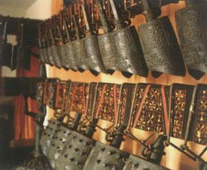 | 释义 | 曾侯乙编钟 曾侯乙墓,是前400多年“曾国”一位姓“乙”的诸侯的墓葬。 在他巨大的坟墓里专门有一个墓室陪葬著乐器,这些乐器包括:琴、筝、五弦各1件,瑟5件,笙1件,悬鼓1件,还有编磬、建鼓、排箫、瑟、抱鼓等等。其中最令人震惊的,就是堪称“国之瑰宝”的青铜编钟。 整套编钟共有65枚,全部由青铜铸造,异常精美。编钟依次列在曲尺型铜木结构的钟架上。 上下三层,每件钟体上都镌刻有金篆体铭文,共2800多字,记录了许多音乐术语,正面均刻有“曾侯乙乍时”(曾侯乙作)。 曾侯乙编钟的总音域有5个八度,音阶结构接近于现代的C大调七声音阶,仅次于现代的钢琴。可以奏出五声、六声或七声音阶的音乐。现代学者推断这套编钟不但可以演奏旋律,还可以演奏和声。 曾侯乙编钟是目前中国出土数量最多、规模最大、保存较好的编钟,被誉为人类文化史上的奇迹。 编钟音乐清脆明亮,悠扬动听,能奏出歌唱一样的旋律,又有歌钟之称。 1982年,湖北省武汉民族乐器厂和武汉精密仪器铸造厂根据曾侯乙编钟制成了一套仿古新编钟。这套编钟还根据舞台演出和现代音乐的需要作了一系列改革。 全套编钟共24枚,每个钟可以发两个音,分三列悬挂。