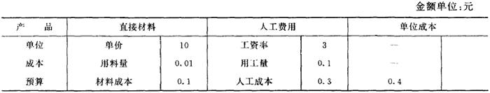 单位产品消耗的人工成本=预计工资率×单位产品的工时定额 单位产品的直接材料成本=预计单价×单位产品材料消耗定额 例如某理发店的产品成本预算如下表: 单位产品成本预算