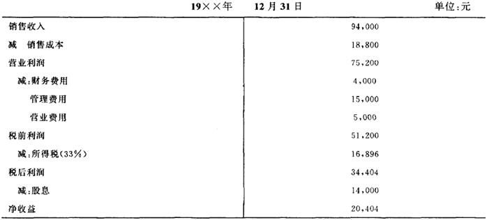 (4)编制预算收益表 根据以上三步的计算结果,我们损益表预测可以编制某理发店19××年的预测损益表如下表所示:(简化格式)