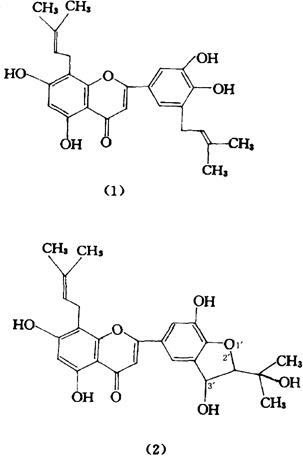 | 释义 | 朝鲜淫羊藿 【概况】: 异名 羊藿叶、三枝九叶草、淫羊藿(东北)。 基源 为小檗科淫羊藿属植物朝鲜淫羊藿的全草。 原植物 朝鲜淫羊藿Epimedium koreanum Nakai,又名东北淫羊藿。(《全国中草药汇编》) 形态 常绿多年生草本,高10~40cm。根状茎匍匐,呈结节状,质硬,多须根。 小叶片卵形,先端锐尖,基部心形,边缘锯齿先端成刺毛状,叶柄有关节。花较大,黄白色或乳白色,花轴具关节。 生境与分布 分布于中国东北地区。 。【化学】:地上部分得到3种黄酮醇葡萄糖甙,分别为4′-甲氧基-5-羟基-8-3,3-二甲基烯丙基黄酮3-葡基(1→2)鼠李糖甙-7-葡萄糖甙(4′-Methoxy-5-hydroxy-8-(3,3-dimethylallyl)flavone 3-glucosyl(1→2)rhamnoside-7-glucoside)、3-二甲苯酰(1→2)鼠李糖甙-7-葡萄糖甙(3-Xylosyl(1→2)rhamnoside-7-glucoside)、3-鼠李糖(1→2)鼠李糖甙-7-葡萄糖甙(3-Rhamnosyl(1→2)rhamnoside-7-glucoside),以及淫羊藿甙(Icariin)[1]。 从该植物中还分得槲皮素(Quercetin)、以及去水淫羊藿素-3-O-α-鼠李糖甙(Anhydroicaritin3-O-α-rhamnoside)[2]。另外还分得两种新化合物,即朝鲜淫羊藿甙(Epimedokoreanoside)Ⅰ和Ⅱ[3]。从地下部分得到淫羊藿新甙A(Epimedoside A)和淫羊藿糖甙A(Ikarisoside A)[4]。得2个新黄酮甙:2″-O鼠李糖基-淫羊藿糖甙A(2″-O-Rhamnosyl icarisoside A)和2″-O-鼠李糖基-淫羊藿甙Ⅱ(2″-O-Rhamnosyl-icariside)[5]。从叶和茎得多种黄酮甙,如4′-甲氧基-5-羟基-8-(3,3-二甲基烯丙基)黄酮3-O-β-D木吡喃糖基(1→3)-4-乙酰基-α-L-鼠李吡喃糖甙-7-O-β-D-葡萄吡喃糖甙,将其制成片剂,可治炎症[6]。 从地上部还分得两个新黄酮成分:朝藿素B(Epimedokoreanin B)(1)、朝藿素C(Epimedokoreanin C)(2)、后者3′-OH和C-2′取代基的构型有待进一步研究[7]。地上部还含淫羊藿新甙C(Epimedoside C)、宝藿甙Ⅰ(Baohuoside Ⅰ)、淫羊藿素(Icaritin)、淫羊藿次甙I(Icariside I)、金丝桃甙和胡萝卜甙[8,9]。