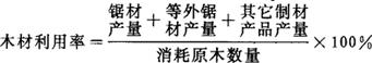 指锯材产量、等外锯材产量和其它制材产品产量的总和占消耗的原木数量比重,用百分数表示。其计算公式为: