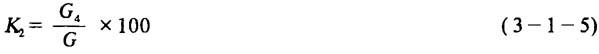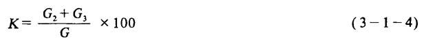 式中 G-试样重量(g) G1-大木片重量(g) G2-标准木片重量(g) G3-小木片重量(g) G4-木屑重量(g) K1、K、K2-分别为大木片含量、木片合格率及木屑含量(%) |