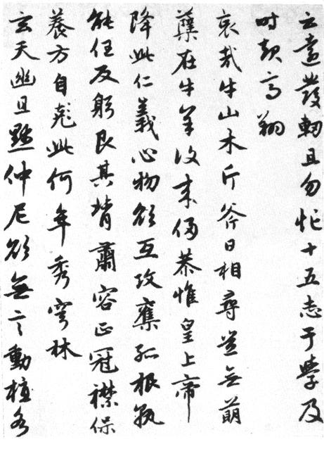 【赏析】: 立志师法锺太传及王右军、王大令的元代大书家赵孟頫,书擅篆隷草眞行五体,尤以行书爲最。虞集称他“楷法深得洛神赋,而揽其标。行书诣圣敎序,而入其室”。他从早年刻意习古到晚年融会变化,认眞继承了二王传统,形成了自己娟好妩美,渊雅闳正,瑰丽超隽的风格。行书《朱子感兴诗并序》正是这一风格的表露。全帖吸取锺王隽逸精雅之笔,用笔圆转酣畅,安和遒媚。结体匀凈精谨,宽博深稳,加上那特有的柔长而秀穆的捺笔,饱满而舒和的撇笔,施墨调和精熟,玉润珠圆。全帖墨气飞润,隽永安逸,藏神不露,旷逸中见醇古,圆润裏现閑暇,不求剑拔弩张的夺人之势,但风神朗发,蕴藉有味,在婉丽俊爽的富有个性的书风中,透出馨雅绝尘的气息。用笔、结体、取势都产生了潇洒灵动的视觉效果。 |