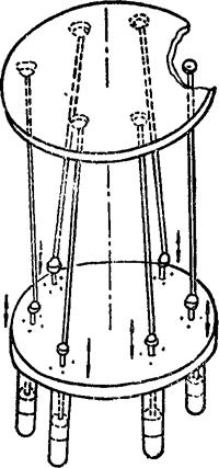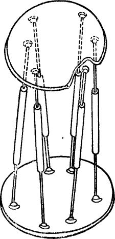 如图示,上下两平台间由6根可变长杆分别以球面副相联接。杆长的变化由液压缸的伸缩来实现。该机构具有6个自由度,由6个驱动缸控制输出端的三维位置变化和三维姿态变化。 例5.2-223 6-PSS空间多闭环机构
