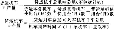 又称货运机车生产率。指在一定时期内,全路、一个铁路局、分局或一个机务段平均每台货运列车机车一昼夜所生产的总重吨公里数。其计算方法有以下两种: