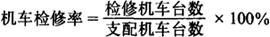 机车检修率的高低,表示机车技术状态的好坏。 机车检修率愈高,说明不良机车台数愈多,因此,机车检修率越低越好。在运输任务一定的情况下,支配机车台数是固定的,因而要压缩机车检修率的主要措施是减少检修机车台数。这就要求在保证安全前提下尽量延长定检公里、定检日数和努力减少临修次数。 |