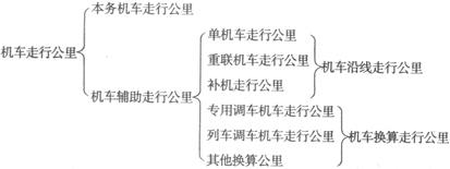 | 释义 | 机车走行公里 机车运行的公里数。 计量单位为机车公里。反映机车工作量的数量指标。 机车走行公里按运输种别分为:货运(包括货物、小运转)、客运(包括旅客、旅混)、路运和专用调车机车走行公里等四种;按工作种别分为:机车本务走行公里和机车辅助走行公里;按运行中是否产生实际的走行公里分为:机车沿线走行公里和机车换算走行公里。 前者就是本务机车、单机、重联机车、补机的走行公里之和;后者是根据机车小时进行换算的各种走行公里之和。 机车走行公里按工作分类和相互关系如下图所示。