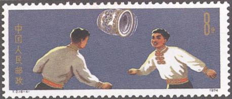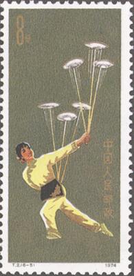 | 释义 | 杂技 发行日期:1974年1月21日 齿孔度数:11 印刷版别:影写版 票幅:(1)(2)(5)(6)27×60;(3)(4)60×27 全张枚数:(1)(2)(5)(6)35(7×5);(3)(4)35(5×7) 设计者:万维生 印刷:北京邮票厂