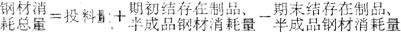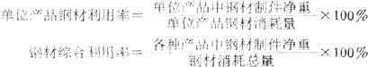指原材料有效利用部分与原材料消耗量之比通常用百分数表示(有些也可用实物量表示)。 反映原材料有效利用的程度和消耗水平的指标。在非机电产品生产中,材料有效利用部分通常表现为产品产量。 如轻工业中的出粉率、出油率、出糖率、木材的出材率,冶金工业中的钢材(坯)成材率、金属回收率等。 计算公式为:  在机电产品生产中,材料有效利用部分通常表现为产品含钢材制件的净重。 计算公式为:  式中:钢材制件净重指构成产品的各种钢材制件净重之和,不包括铸钢和其他非钢材制件重量。一般情况下,为方便起见,可用设计净重代替实际净重计算。钢材消耗总量指机电产品生产过程中从钢材投入生产开始到制成品止所消耗的全部钢材。计算公式为:  式中:期初(末)结存在制品、半成品钢材消耗量可用期初(末)在制品、半成品结存量乘以相应的工艺定额求得。 材料利用率和单耗都反映产品消耗原材料的水平。材料利用率采取的是逆指标形式,材料利用率愈高,说明生产产品的材料消耗水平愈低。当材料利用率中的产品产量用实物量表示时,则材料利用率和单耗互为倒数: